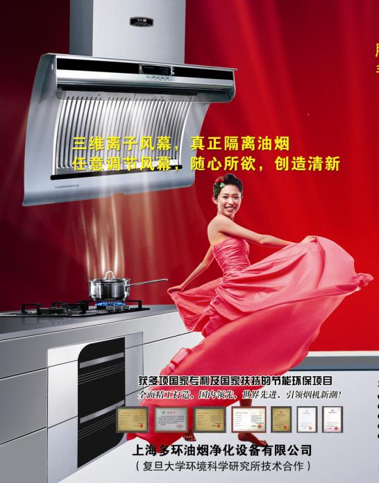 發(fā)展無(wú)坦途,創(chuàng)新無(wú)止境,只有不斷創(chuàng)新,才能讓您成為焦點(diǎn).現(xiàn)在,多環(huán)廚房專家已為您有效的解決油煙污染推出了新方案.三維離子風(fēng)幕技術(shù),為吸油煙機(jī)帶來(lái)新變革,在油煙機(jī)正面,任意多個(gè)角度設(shè)置風(fēng)幕,封死油煙逃逸方向,有效的隔離油煙,實(shí)現(xiàn)全面除煙.另有活性炭?jī)艋b置,可以凈化廚房空氣,給您一個(gè)清新、自然的家。